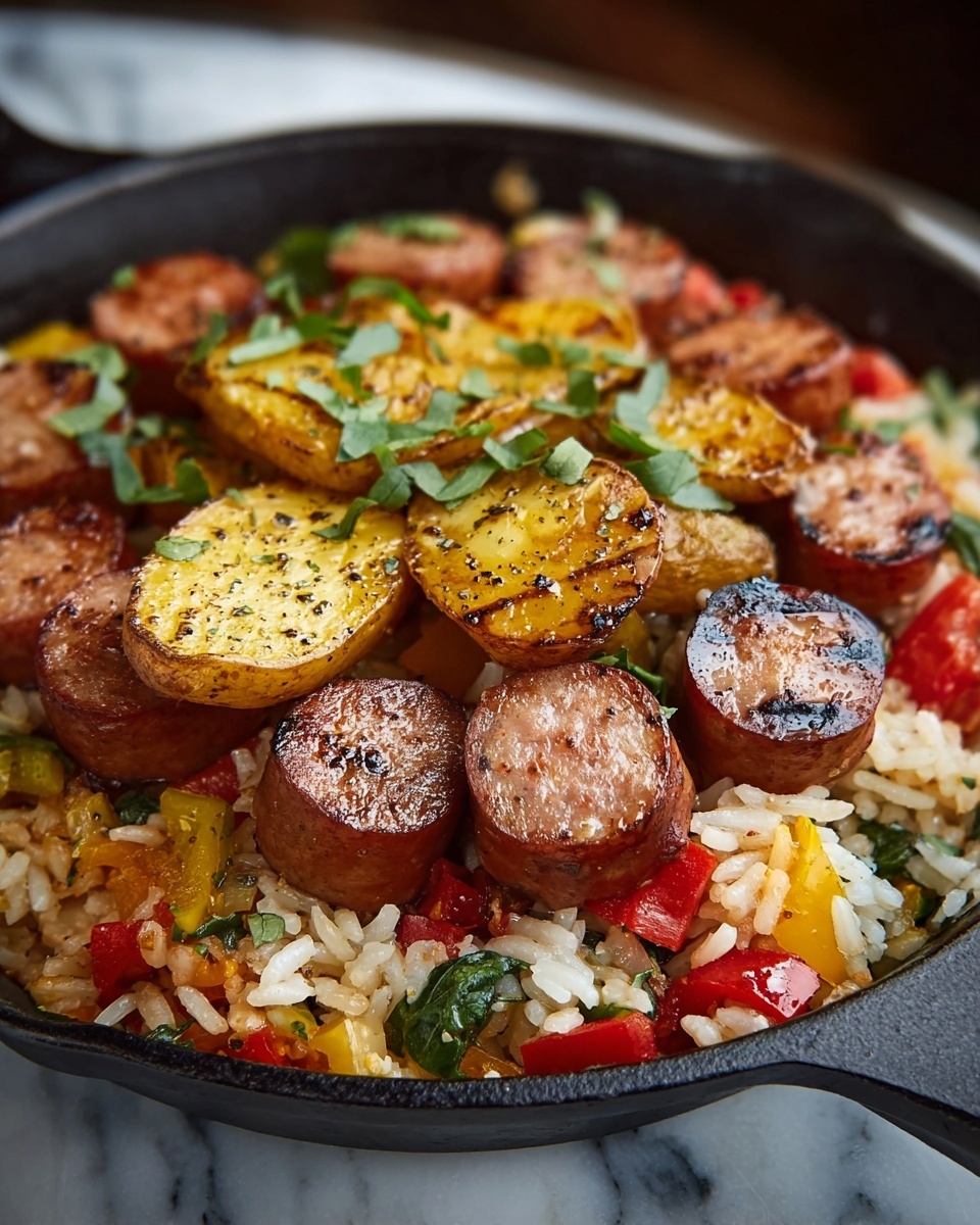 You really can’t go wrong with this Summer Sausage Skillet with Andouille and Fresh Basil Cilantro Crema Recipe — it’s a vibrant, hearty dish that looks as amazing as it tastes. The way smoky sausage meets sweet vegetables, all brightened by that creamy herb sauce, is downright addictive. I hope you give this recipe a try and enjoy every flavorful bite as much as I do. It’s one of those dishes that feels like a warm hug served on a skillet.