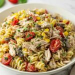 This Summery Chicken Pasta Salad is a fresh, vibrant, and easy-to-make dish perfect for warm weather. Combining tender cooked chicken, colorful vegetables, and a tangy lemon-oregano dressing, this salad is both hearty and refreshing. Perfect as a light lunch or a side dish for outdoor gatherings, it offers a great balance of protein, veggies, and pasta all tossed in a flavorful dressing.