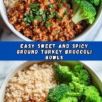 A flavorful and healthy Sweet & Spicy Ground Turkey & Broccoli Bowl recipe featuring lean ground turkey cooked with fresh broccoli florets in a savory-sweet sauce made from honey or maple syrup, low-sodium soy sauce, garlic, ginger, and red pepper flakes. Perfect for a quick and nutritious weeknight dinner.