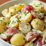 This classic American potato salad features tender Yukon gold potatoes coated in a creamy dressing made with mayonnaise, mustard, and apple cider vinegar, enhanced with celery, red onion, hard-boiled eggs, and optional fresh parsley. Perfect as a refreshing side dish for picnics, barbecues, or summer gatherings.
