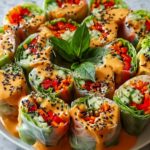 These Vegetarian Spring Rolls with Peanut Dipping Sauce are fresh, crunchy, and packed with vibrant vegetables wrapped in delicate rice paper. They make a perfect appetizer or light meal, accompanied by a rich and tangy homemade peanut dipping sauce that adds a delightful nutty flavor.