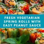 These Vegetarian Spring Rolls with Peanut Dipping Sauce are fresh, crunchy, and packed with vibrant vegetables wrapped in delicate rice paper. They make a perfect appetizer or light meal, accompanied by a rich and tangy homemade peanut dipping sauce that adds a delightful nutty flavor.
