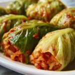 Turn your cabbage rolls into a stunning centerpiece by arranging them in a circular pattern in a shallow dish with extra sauce ladled on top. You can also serve individual rolls on flat plates garnished with microgreens or edible flowers for a restaurant-worthy touch that’s sure to impress guests at dinner parties or family gatherings.