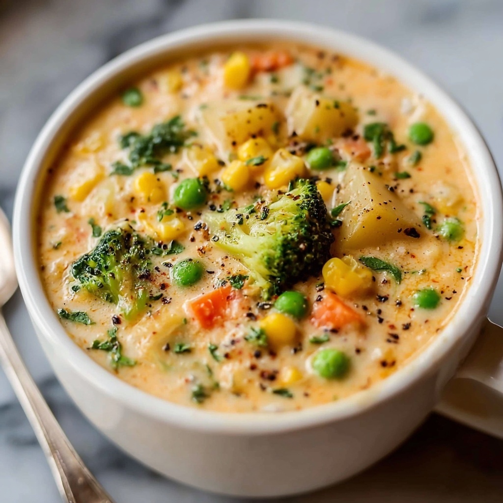 Reheat leftovers gently on the stovetop over medium-low heat, stirring occasionally to prevent scorching. Add a splash of vegetable broth or water if it seems too thick. This will help recapture that creamy, velvety consistency and fresh taste of your Veggie Pot Pie Soup Recipe.