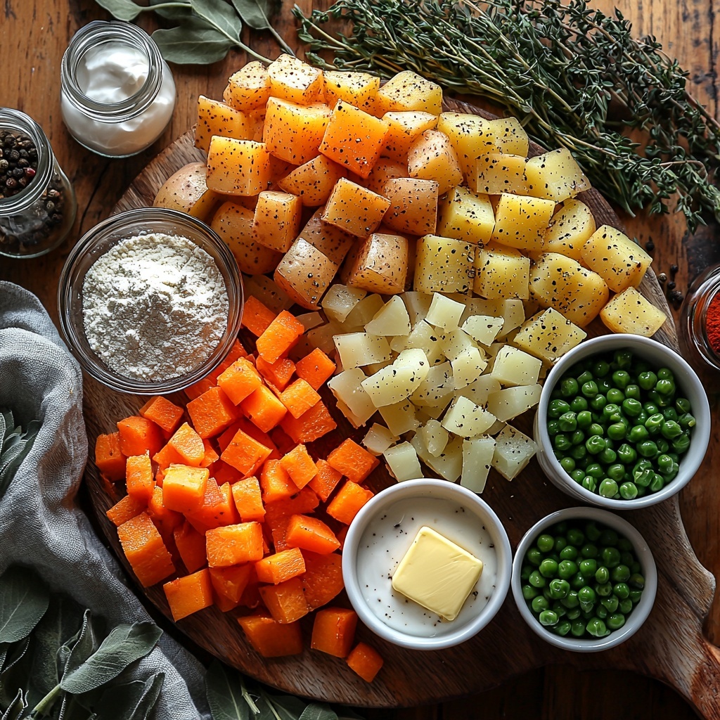 Getting started on this Veggie Pot Pie Soup Recipe is easy with a handful of simple, wholesome ingredients. Each one plays a vital role in creating that signature creamy texture, hearty vegetable goodness, and inviting aroma that make this soup so satisfying.