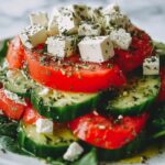 A refreshing and easy-to-make watermelon cucumber feta salad that combines sweet watermelon, crisp cucumber, tangy feta cheese, and fresh mint, all tossed in a light olive oil and lime dressing. Perfect as a healthy side dish or a light summer snack.
