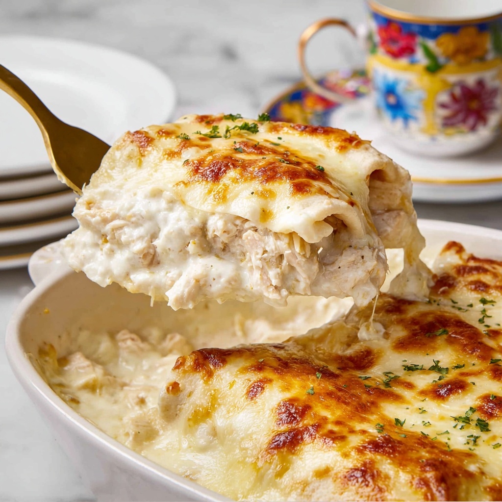 - Assemble and Bake: Pour the white sauce evenly over the rolled tortillas in the baking dish. Spread it to cover all enchiladas thoroughly. Bake uncovered in the preheated oven for 20 minutes or until the sauce is bubbly and the cheese on top is melted and slightly golden.